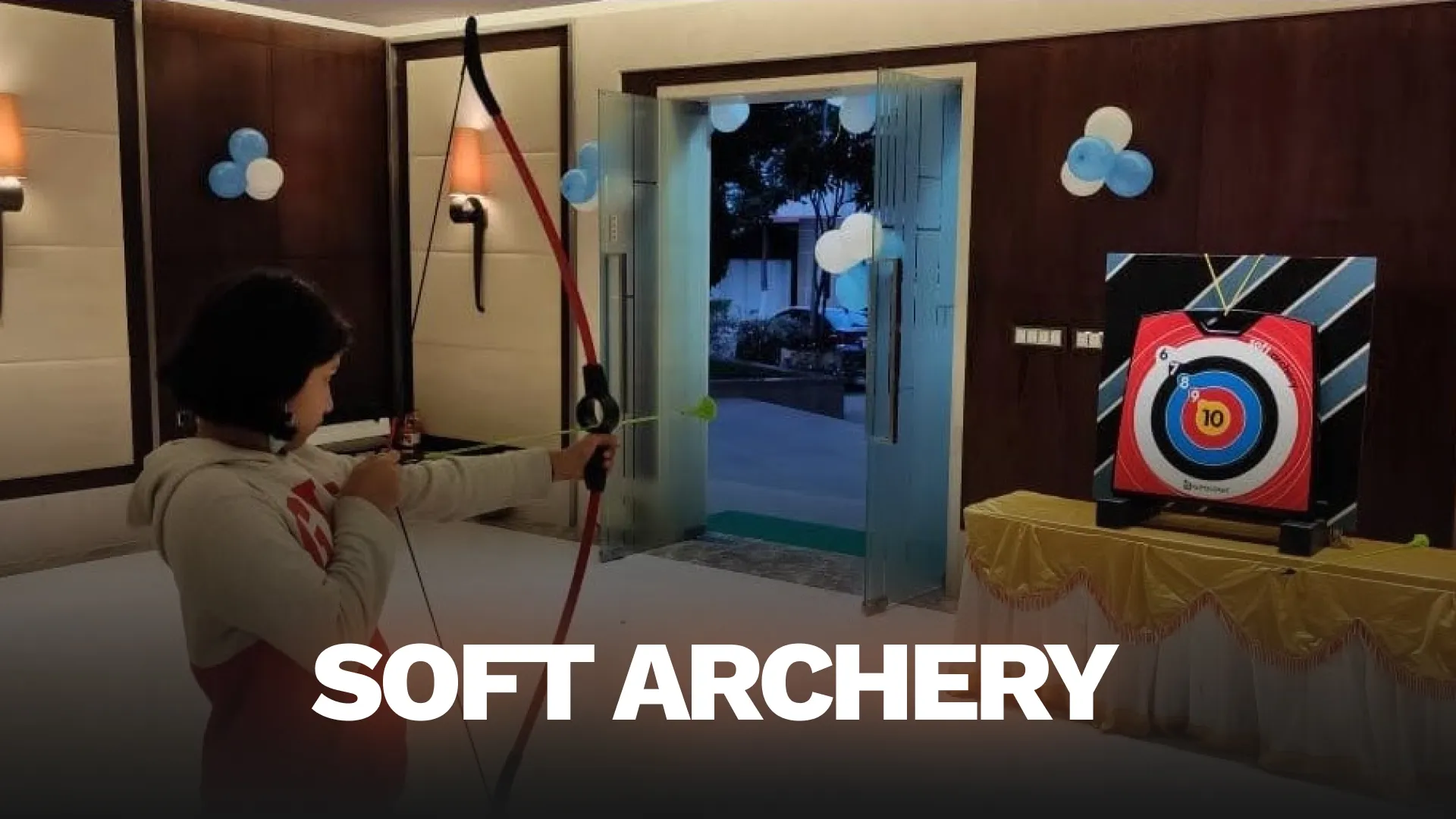 “Experience the excitement of Soft Archery with ForceFudge’s Carnival Game. Get ready to test your aim as you stand 4 feet from the target board. Your mission: To claim victory, hit the center using our special sticky arrows. Each player gets three chances to hit the bullseye and win the game.“